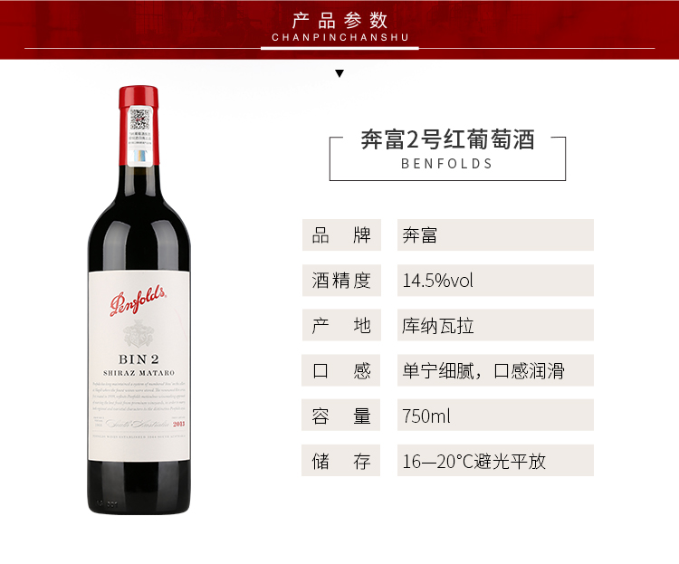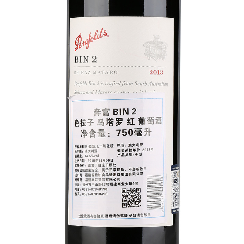 澳大利亞進(jìn)口奔富BIN2色拉子馬塔羅紅葡萄酒