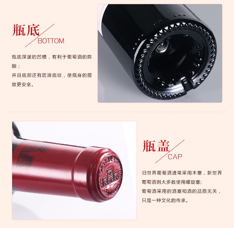 葡萄品種(zhǒng):赤霞珠、梅洛、品麗珠 貯存條件:避免陽光直射、與5-25℃幹燥通風處卧放或 倒放為宜