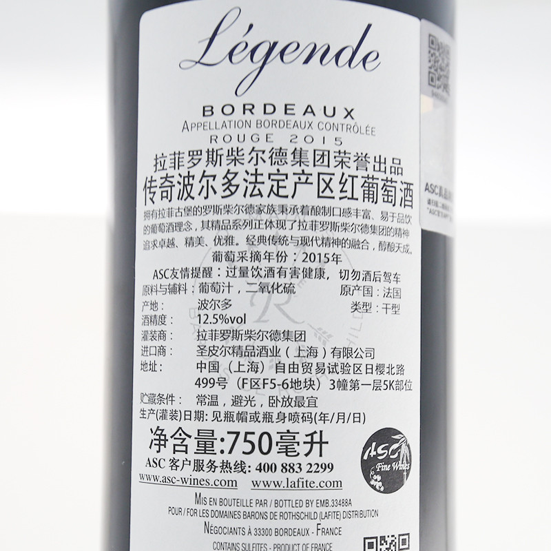 | 品名: :法國(guó)波爾多拉菲傳奇幹紅葡萄酒原瓶進(jìn)口 | 原料與配表:葡萄汁、二氧化硫 |