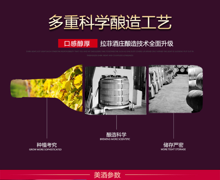 | 醒酒時(shí)間:15-25分鐘 | 口感:濃郁柔和 餘韻悠長(cháng) |